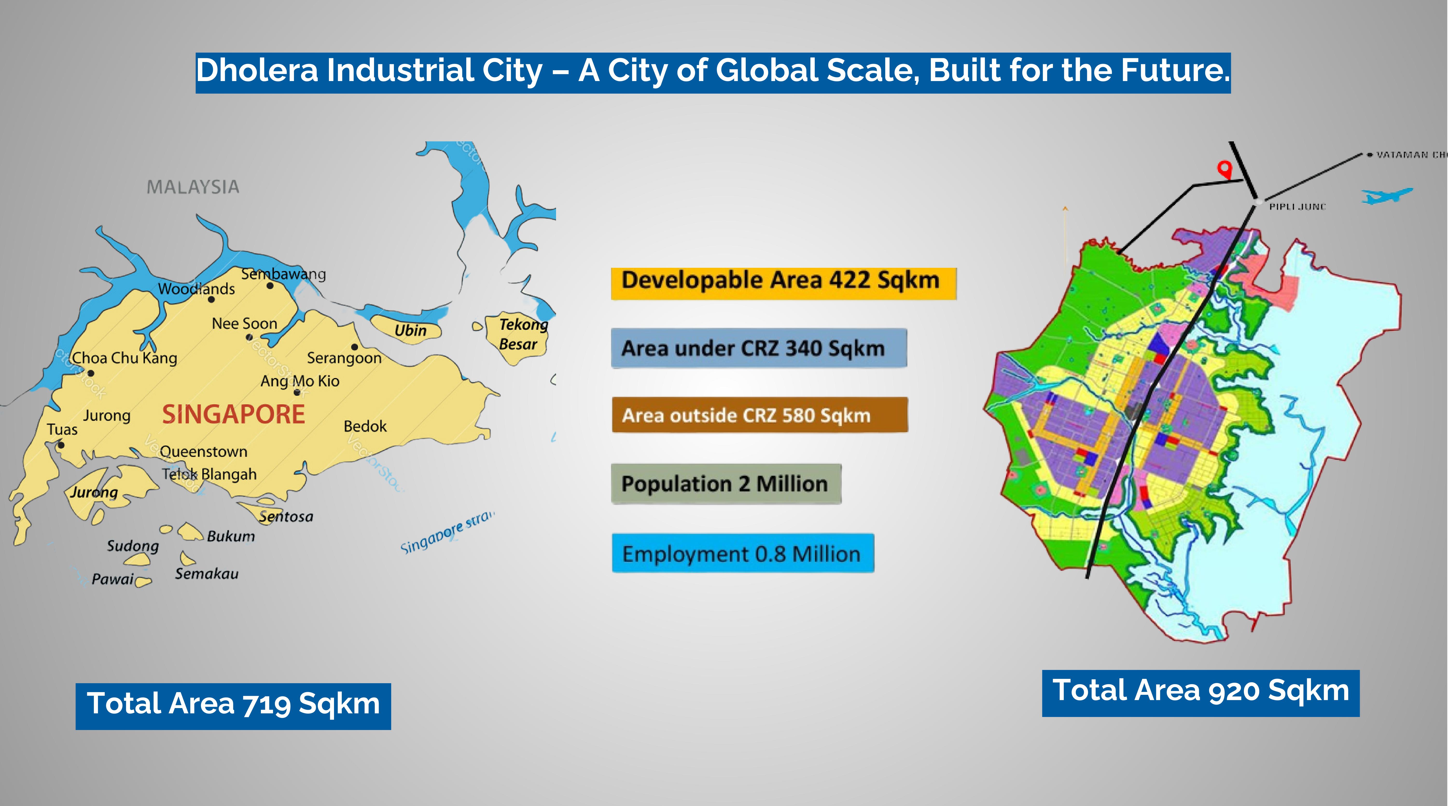 India’s first platinum-rated greenfield industrial smart city with TP Area of ~422 sq.km inside a 920 sq.km SIR. Excellent air, road & rail connectivity; part of the DMIC ecosystem with underground utilities and world-class infrastructure.